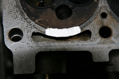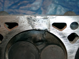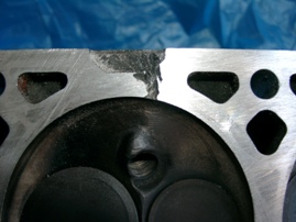 durchgebrannte Dichtfläche am getunten Zylinderkopf einer Lingenfelter-Corvette Auftragschweissen vor dem Planschleifen Ein neuer Zylinderkopf aus den USA wäre wohl ungleich teurerSchweissen eines VW Zylinderkopfes
